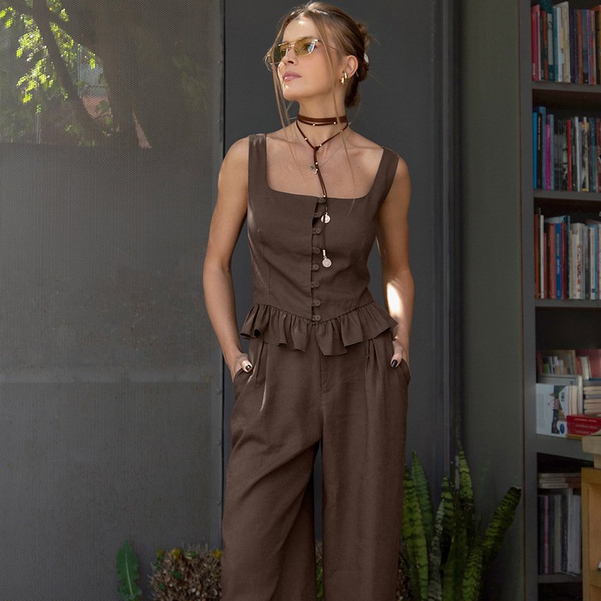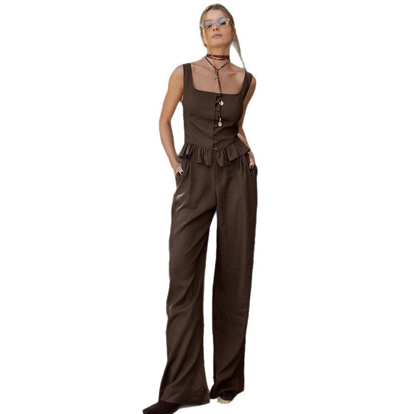 Autumn Fashion Camisole High Waisted Wide Leg Pants Designed Temperament Casual Suit Commuting