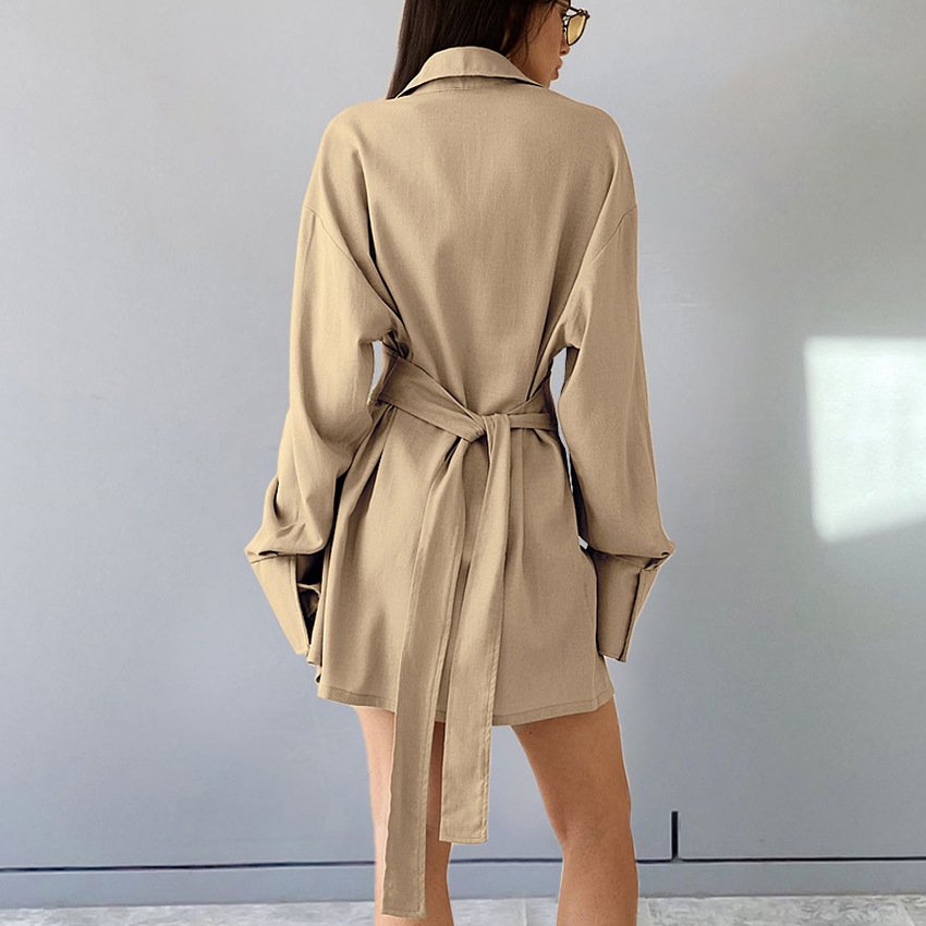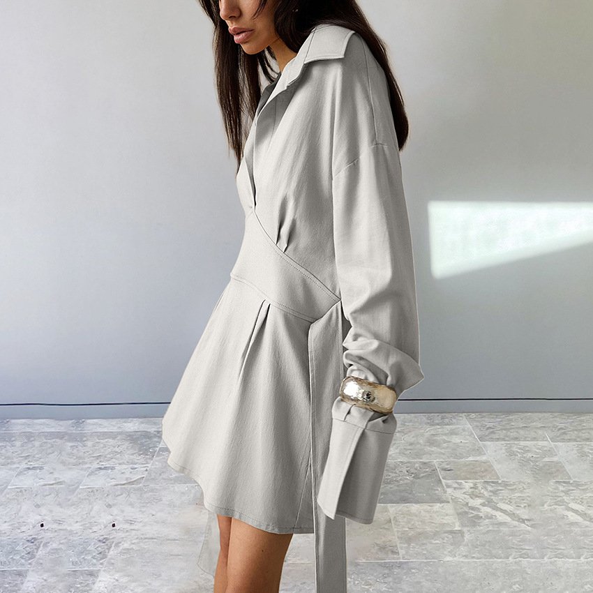 Autumn waist-cinched long-sleeved dress with stylish design, stylish and casual commuting