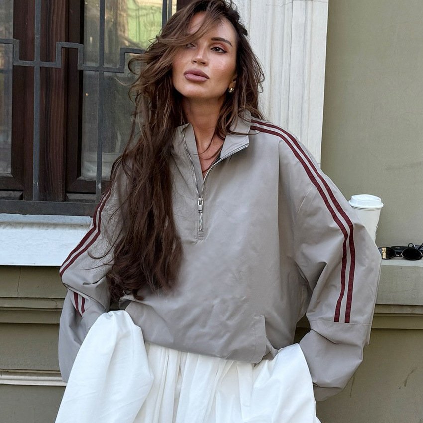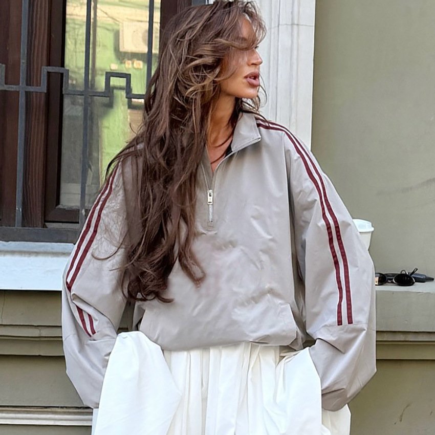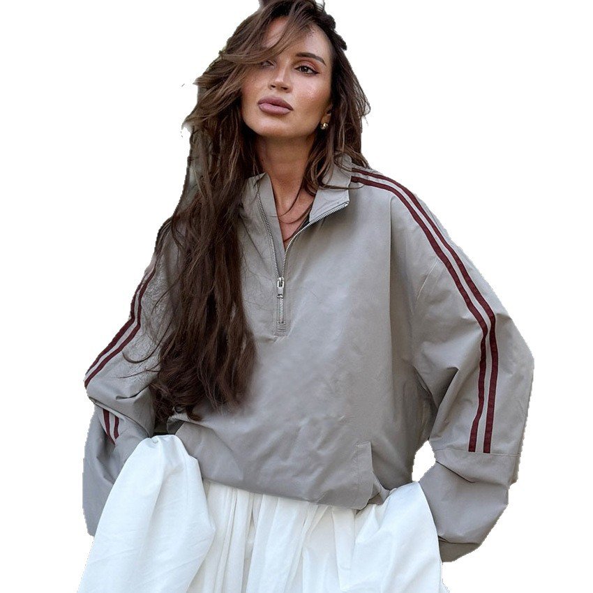 Be the first to review “Contrast striped jacket design gray windbreaker jacket feminine and fashionable”