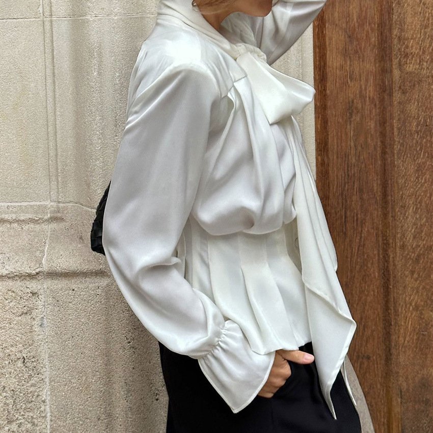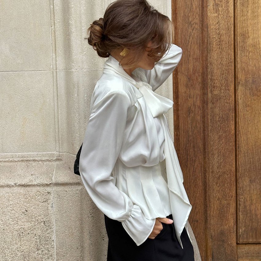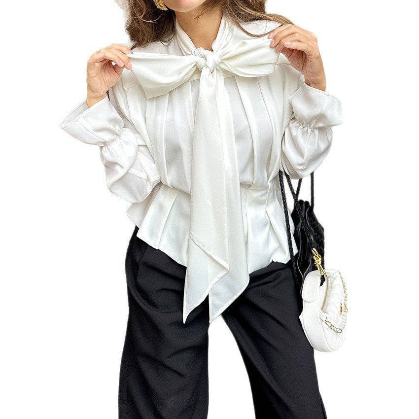Elegant white shirt, fashionable and elegant commuter waist bow top for women