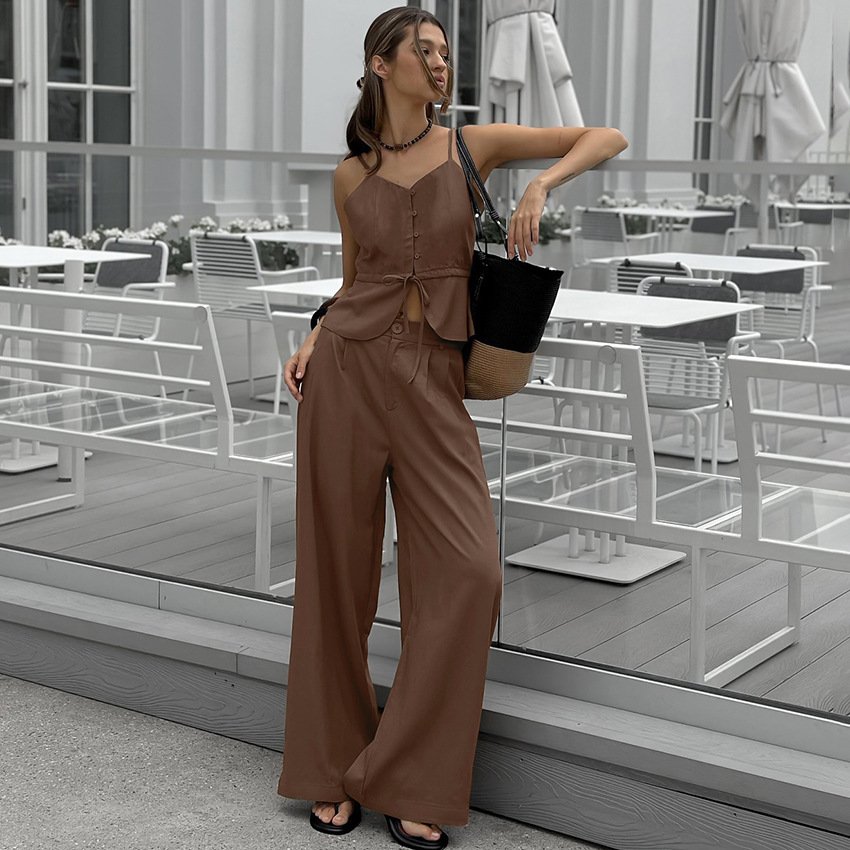Fashionable camisole, high-waisted wide-leg trousers two-piece set, stylish and elegant for commuting