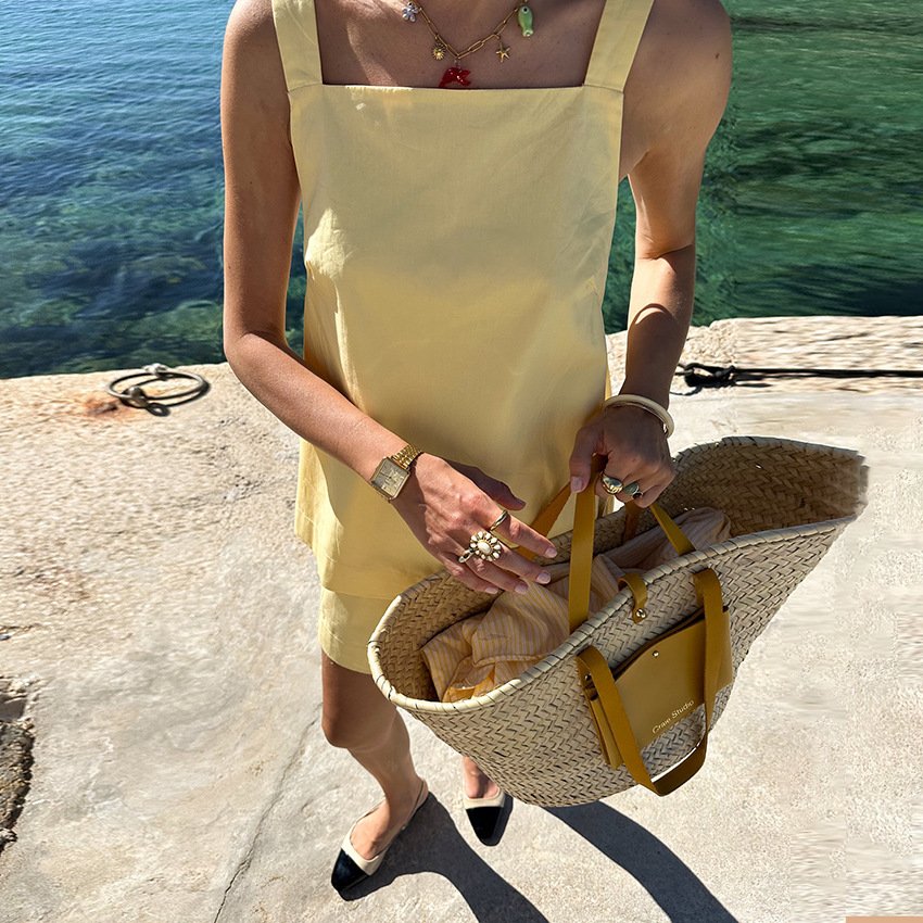 Fashionable casual pure cotton suit, temperament commuter vest, top and skirt