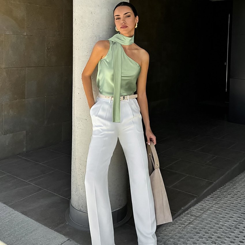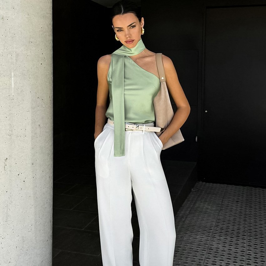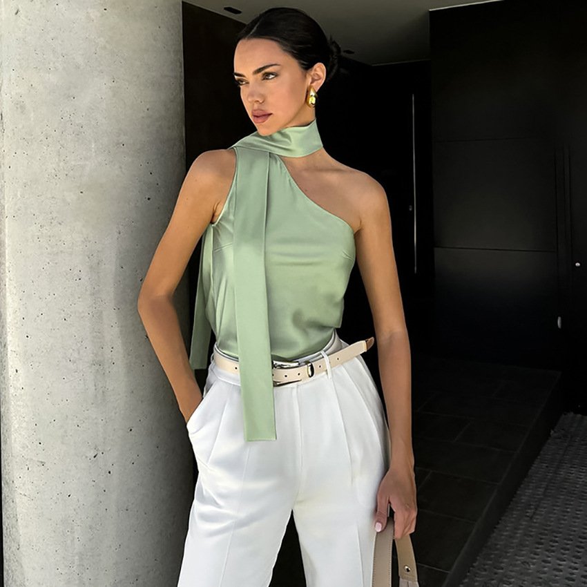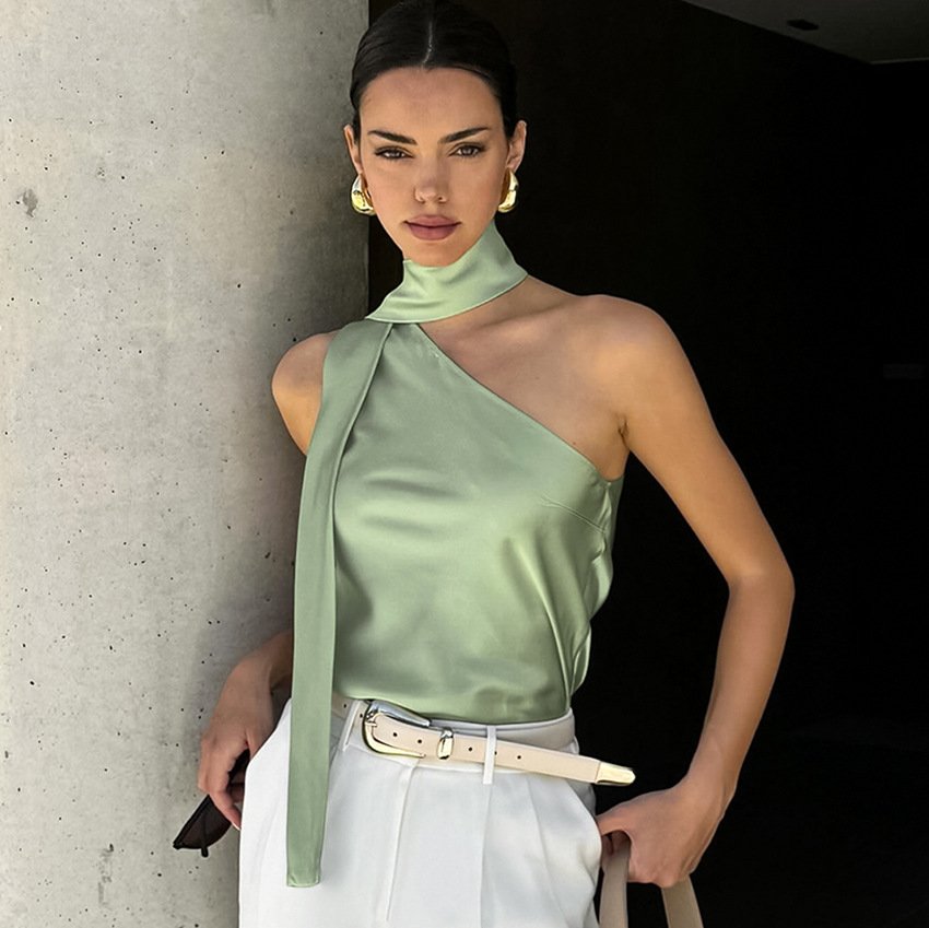 Irregular collar versatile vest design slim fashion personality versatile tops for women