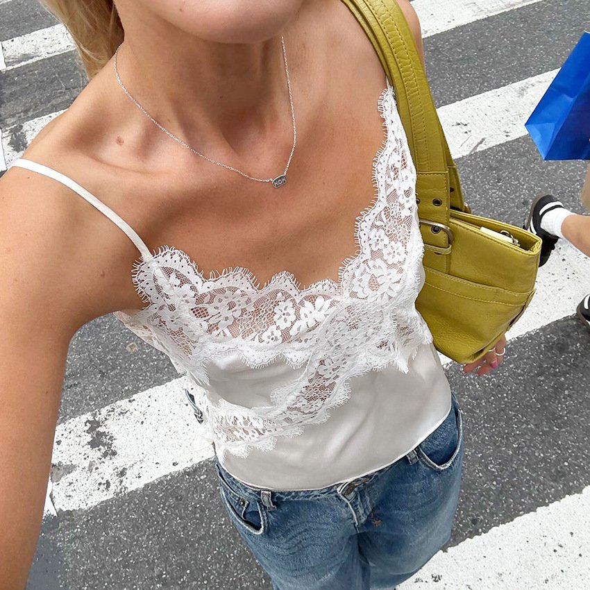 Lace stitching hollow camisole design fashionable and sexy top