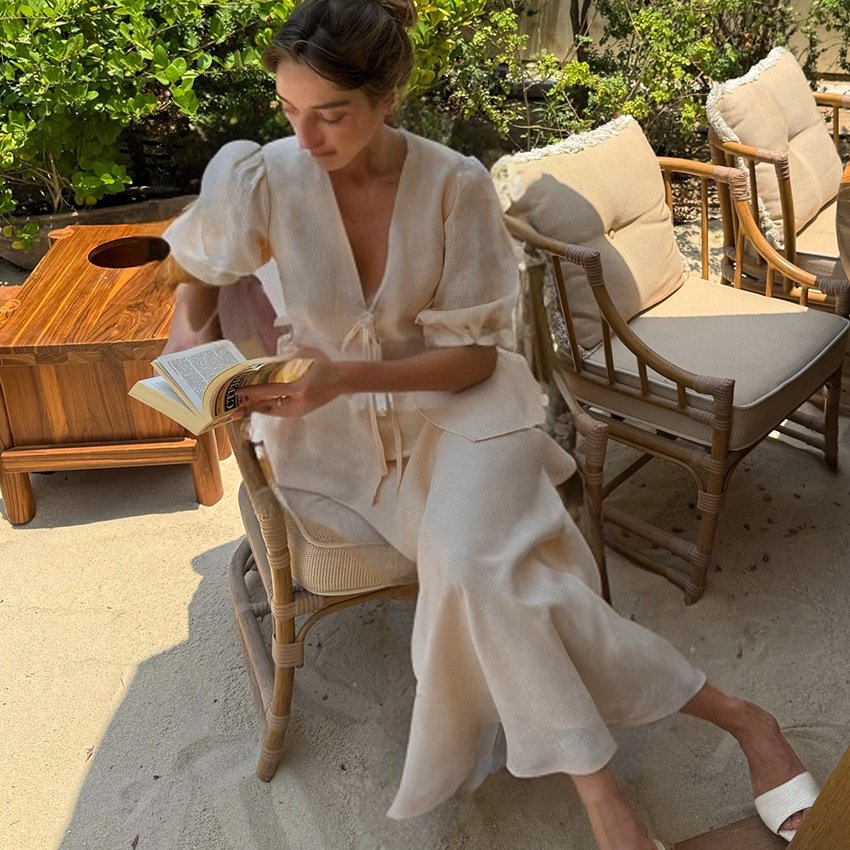 Be the first to review “Lace-up collared shirt, puff sleeves, skirt suit, women’s design, temperament and fashion”