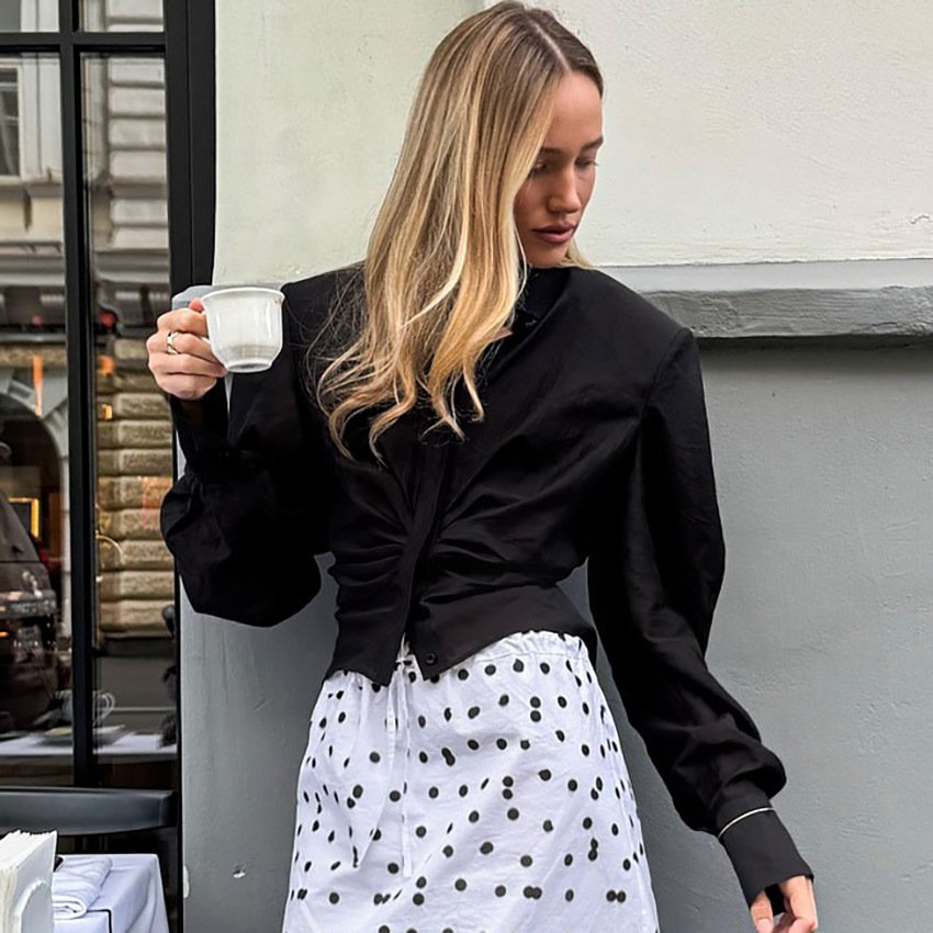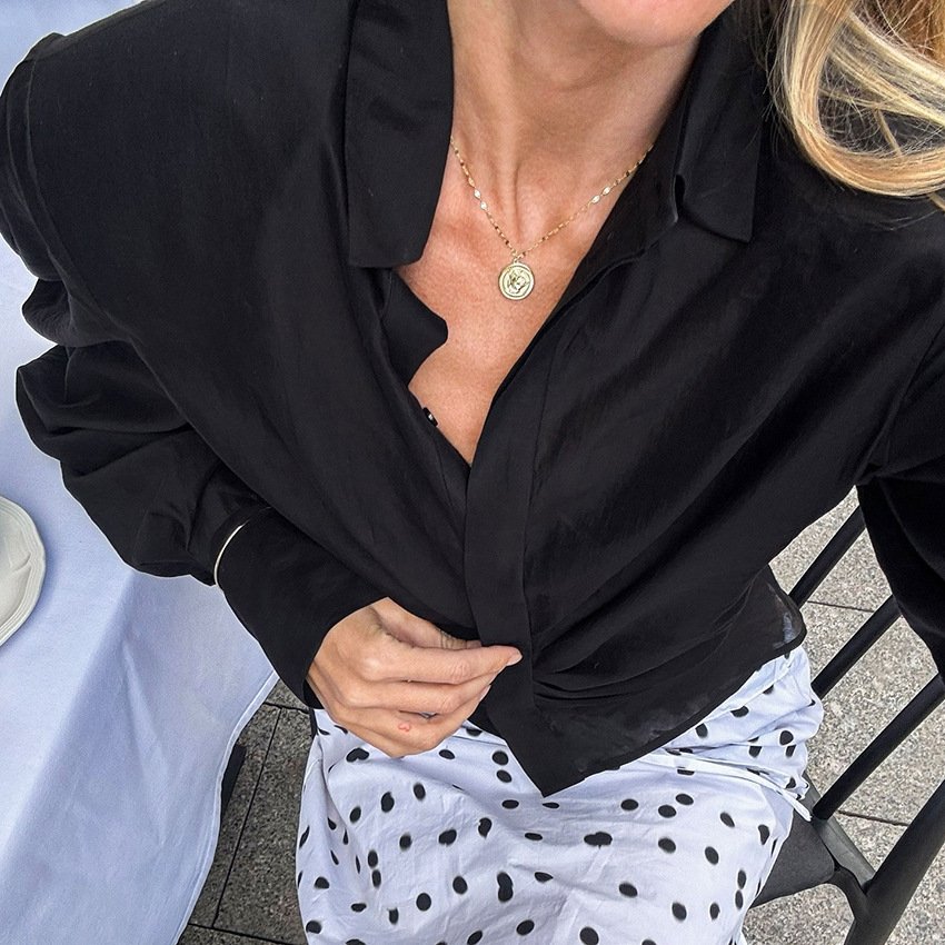 Long-sleeved shirt for women. Slim-fitting pleated design niche shirt with stylish temperament.