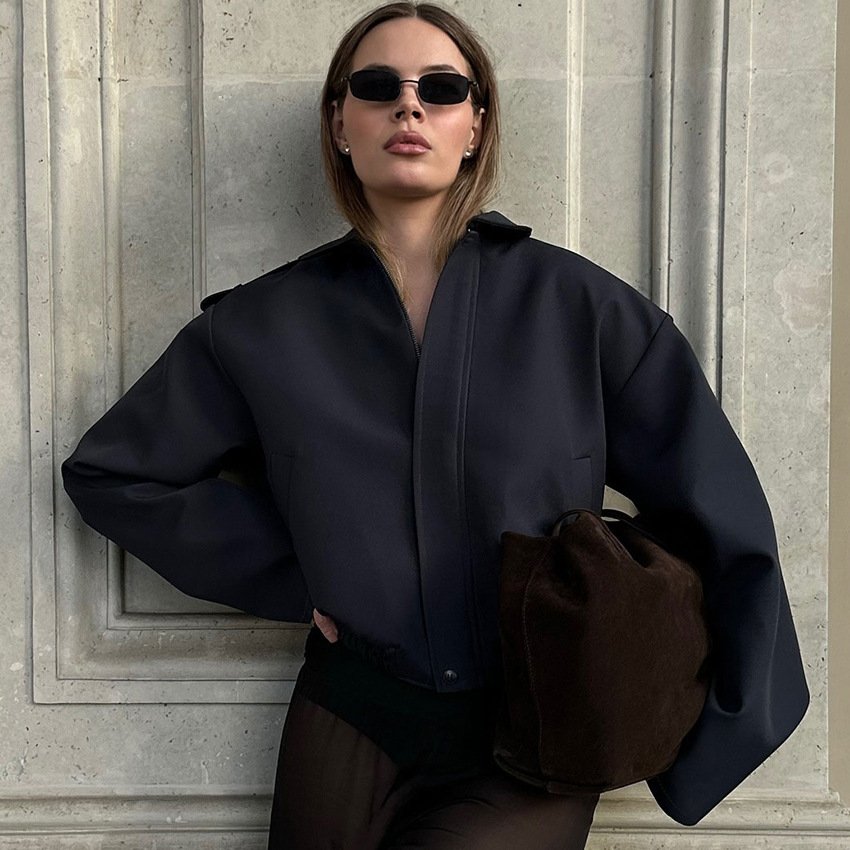 Navy blue short coat with stylish design and stylish lapel jacket top