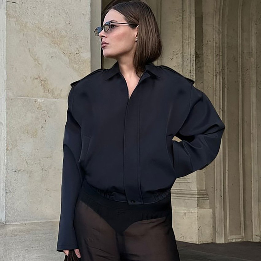 Be the first to review “Navy blue short coat with stylish design and stylish lapel jacket top”