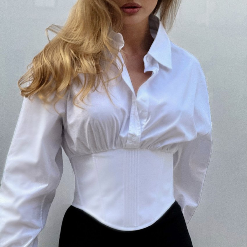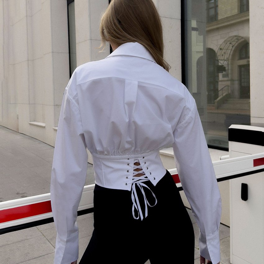 Palace-style short slim-fitting waist-cinching shirt, lace-up women’s shirt, stylish and stylish design
