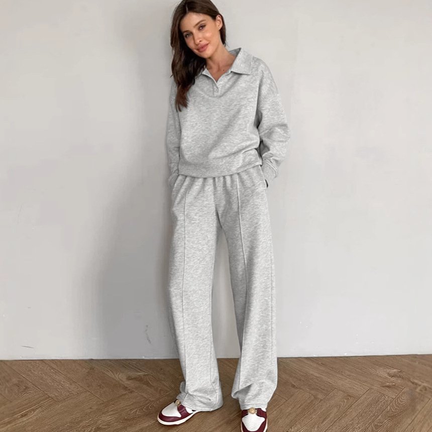 Pink fashionable casual sports suit plus velvet thickened sweatshirt high-waisted trousers two-piece set