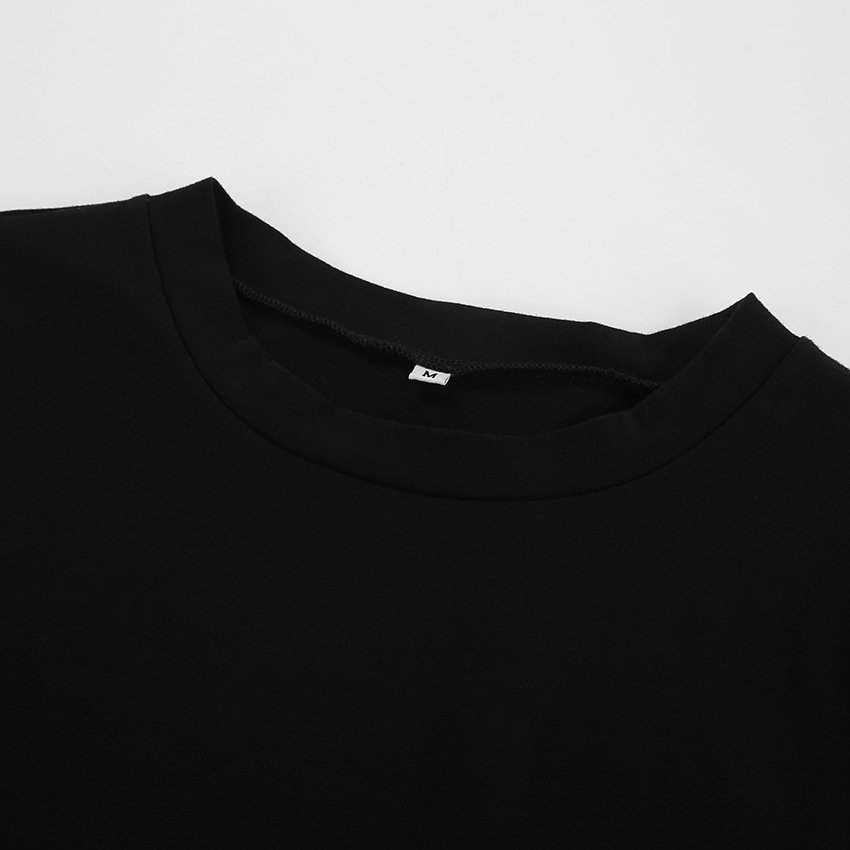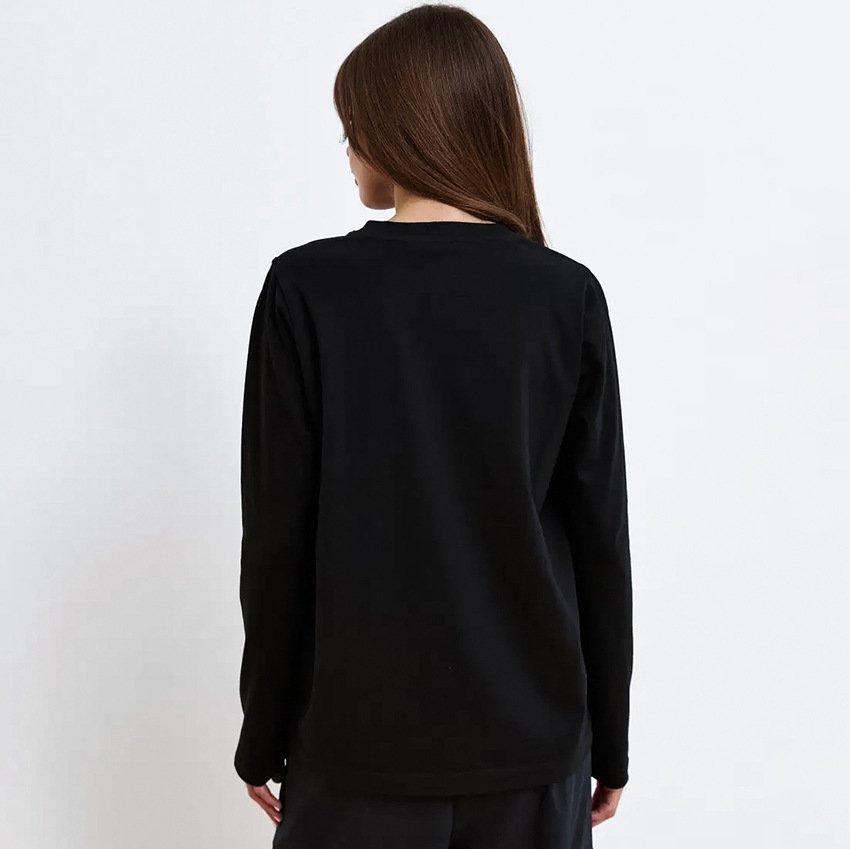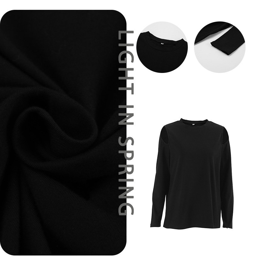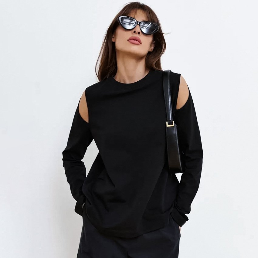Pure cotton black simple long-sleeved shirt off-shoulder with hollow design top for women