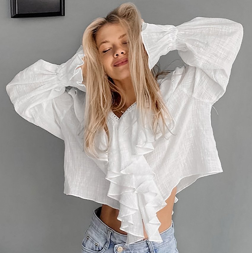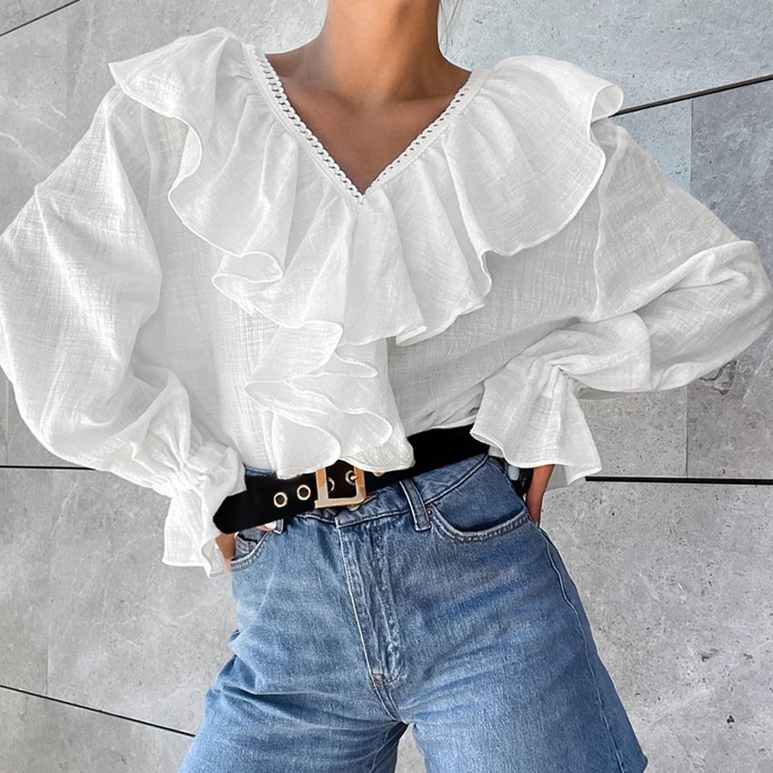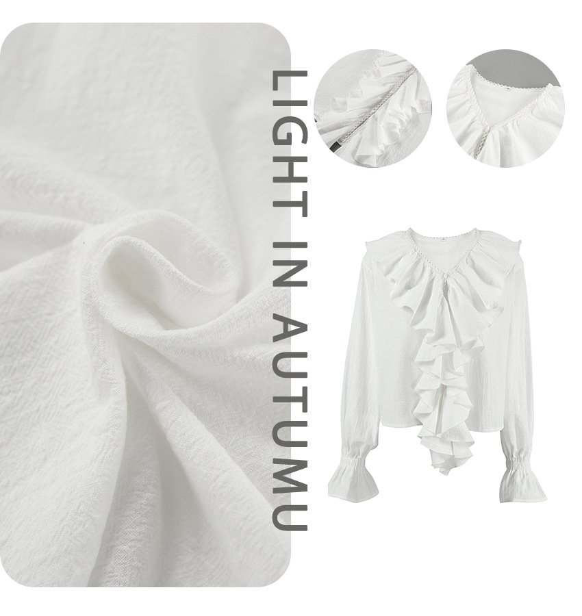 Pure cotton design dropped shoulder sleeve lace women’s shirt niche ruffle top for women