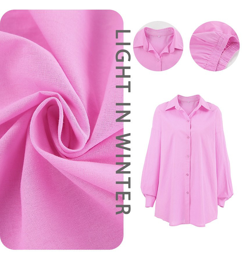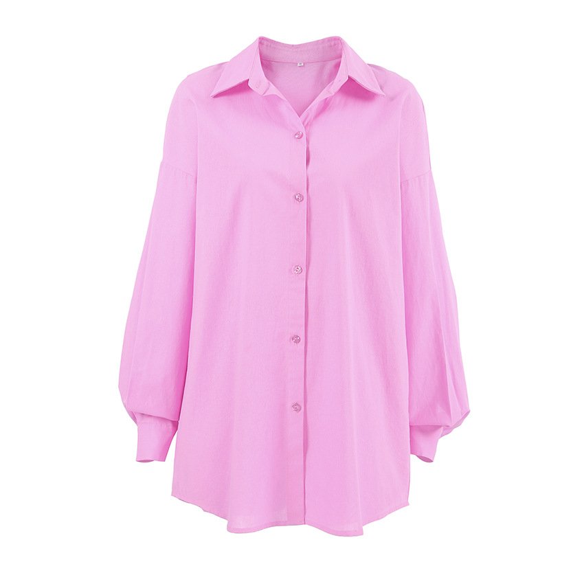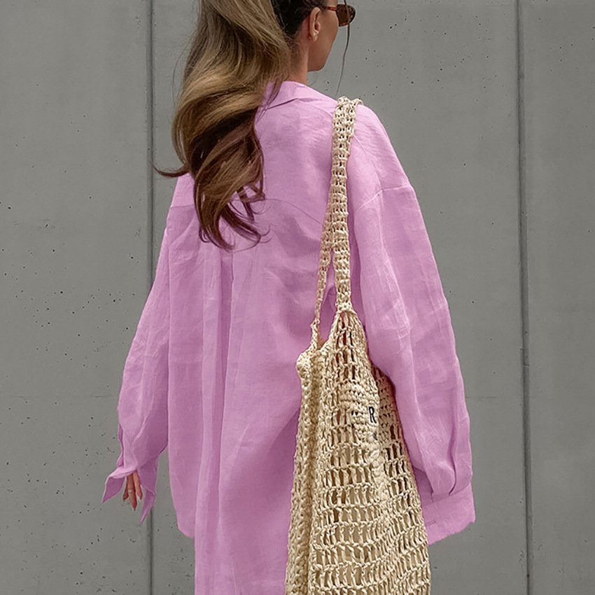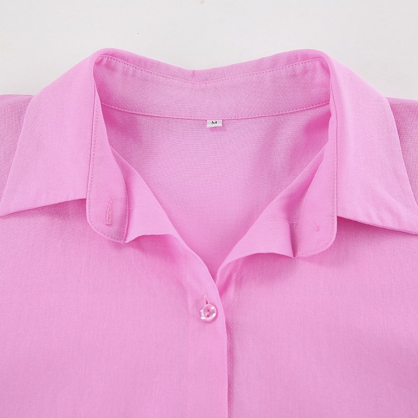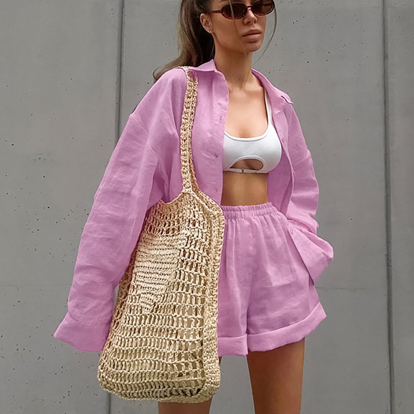 Pure cotton pink fashion suit design loose long-sleeved shirt high-waisted sports and leisure two-piece set