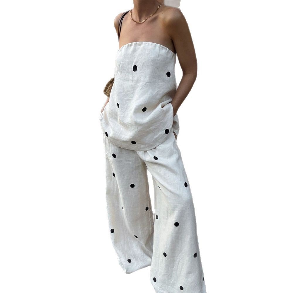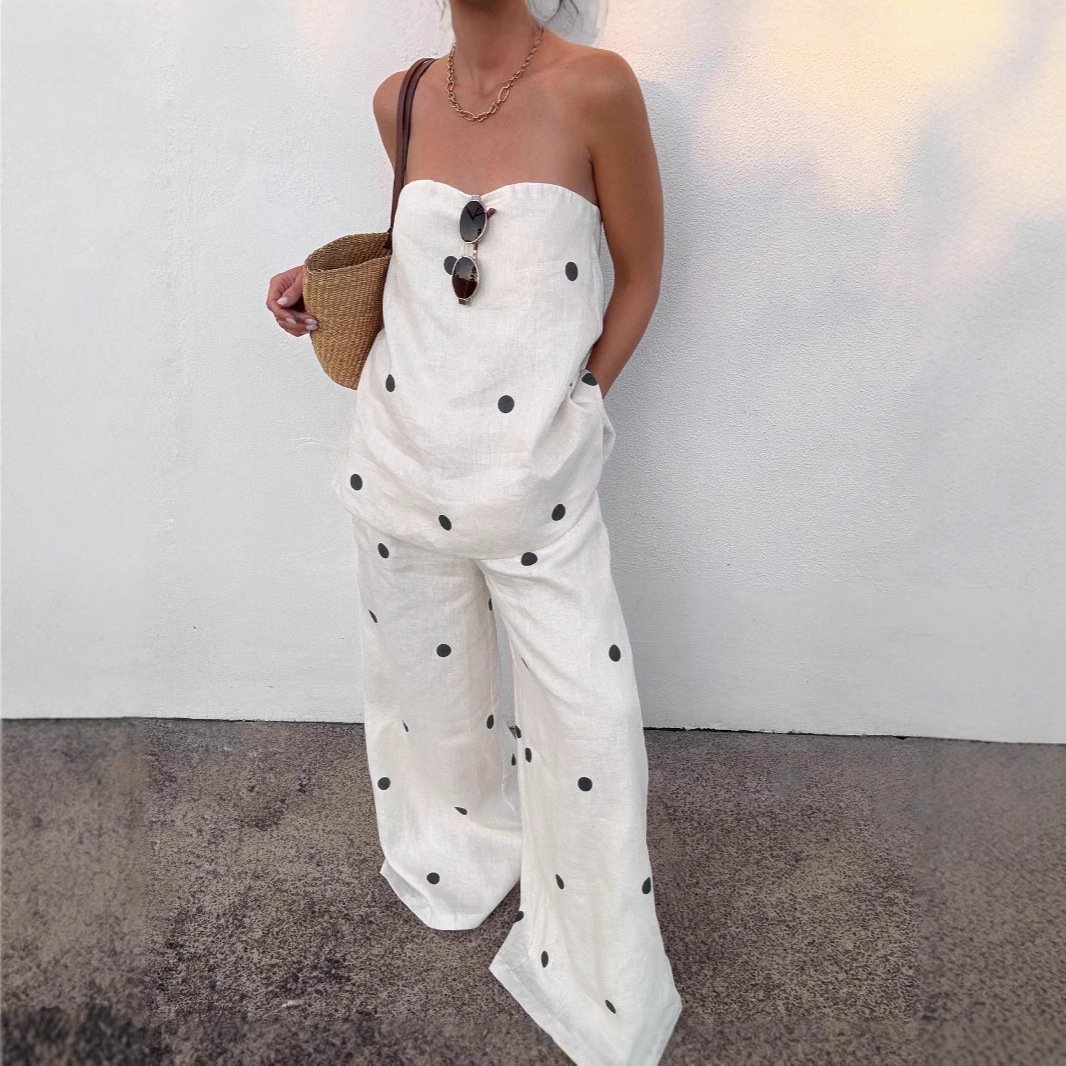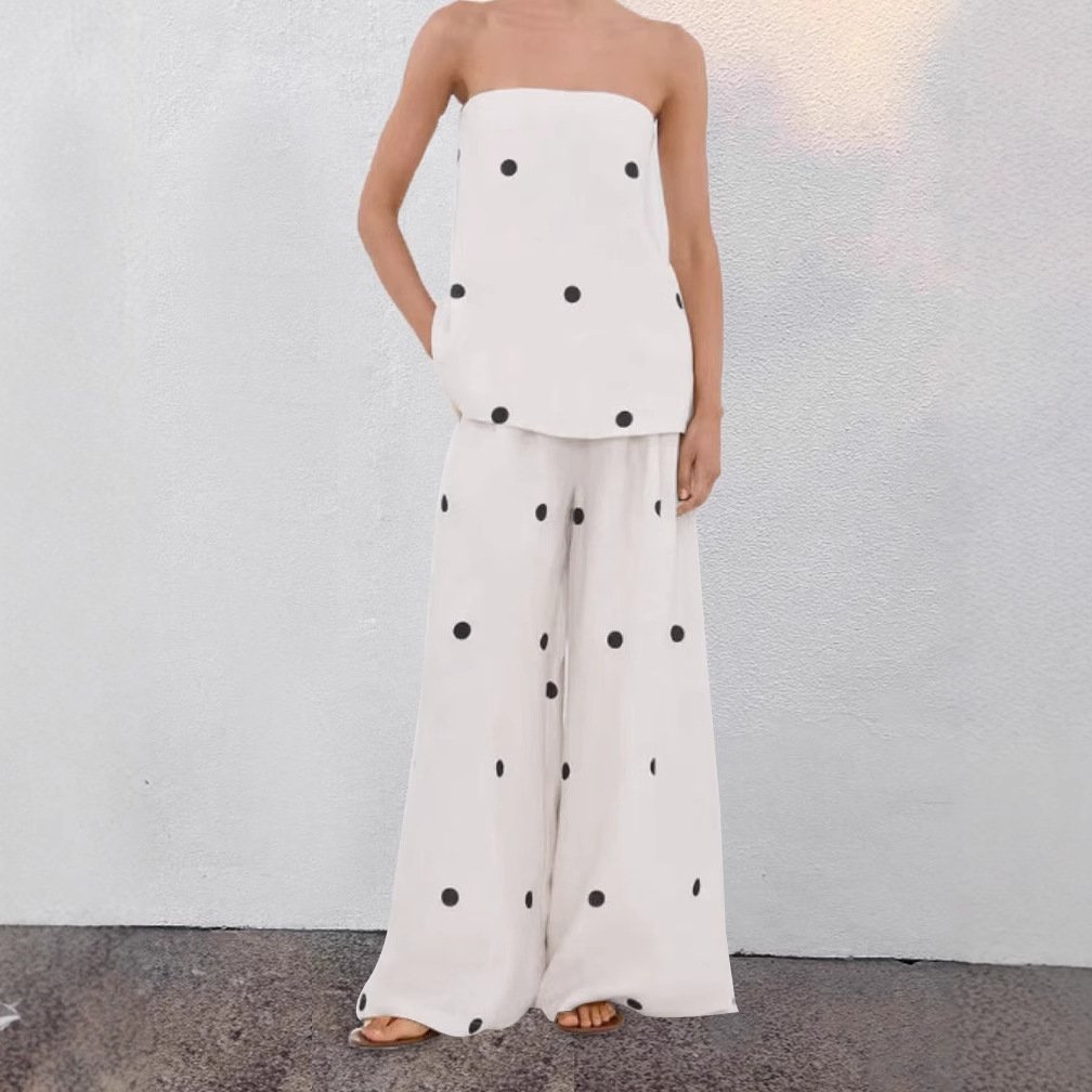 Pure cotton printed polka-dot vest and wide-leg pants two-piece set for women with a stylish commuter feel
