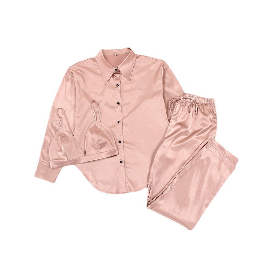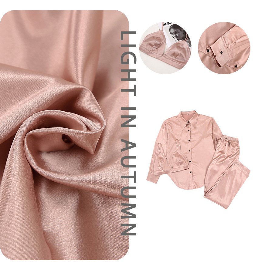 Satin ice silk suit women’s casual three-piece vest shirt commuting wide leg pants