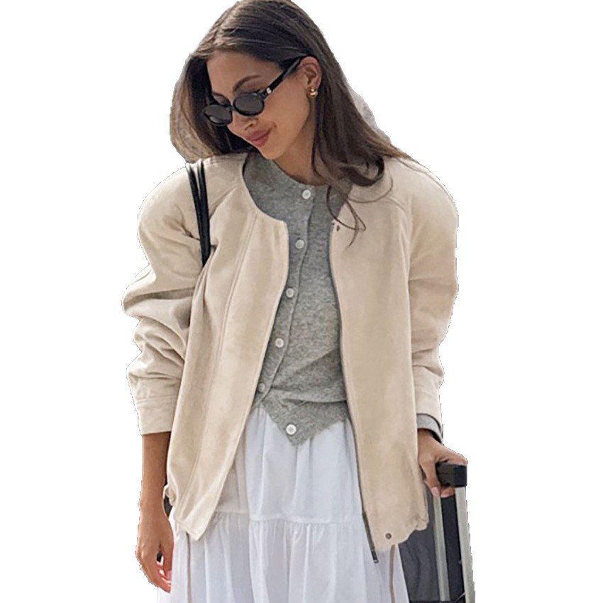 Suede jacket, nubuck drawstring top, women’s design, temperament and fashion