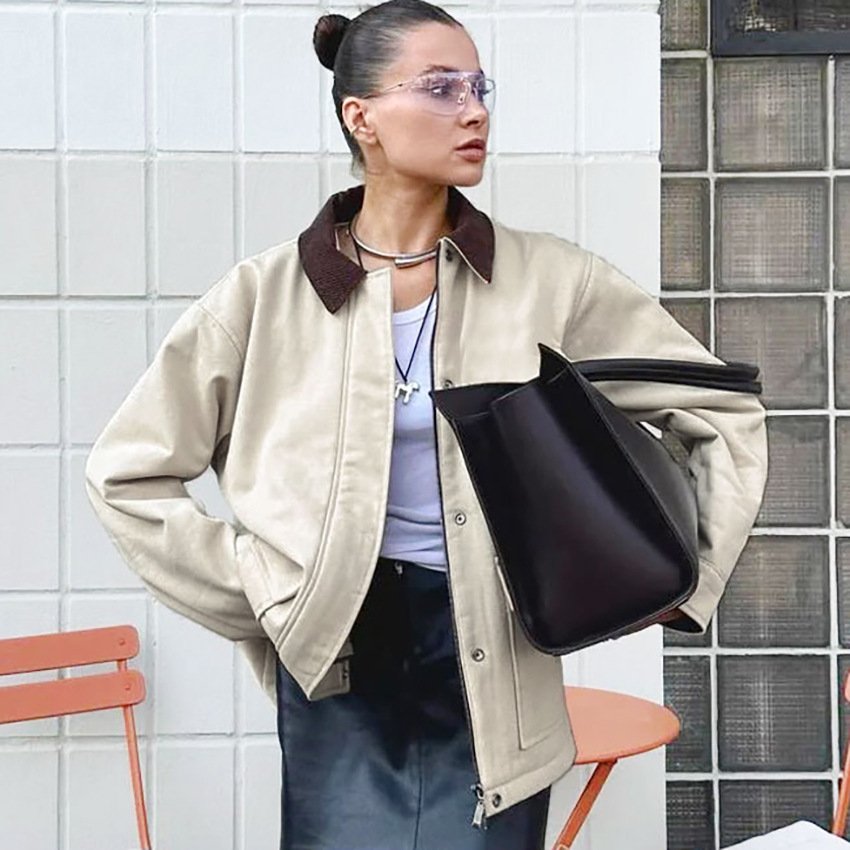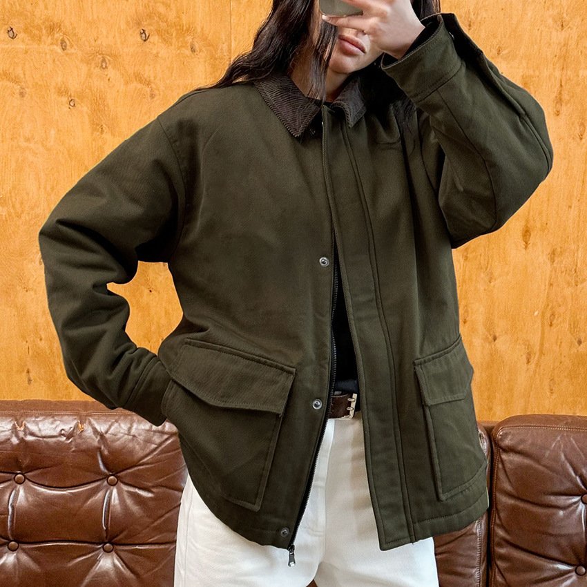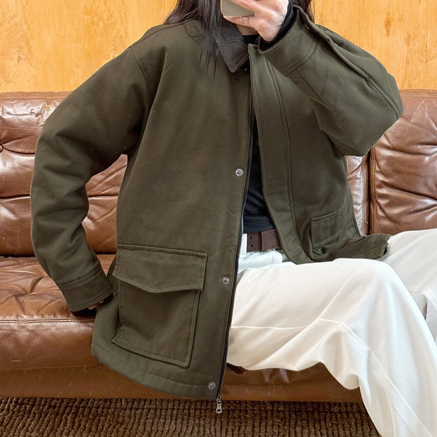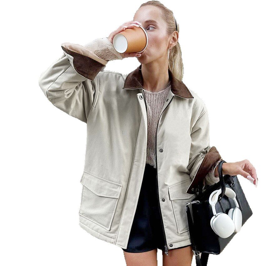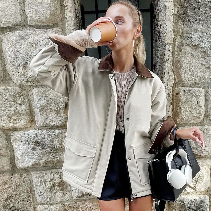 Twill contrasting color jacket design, pocket khaki style, stylish commuting style