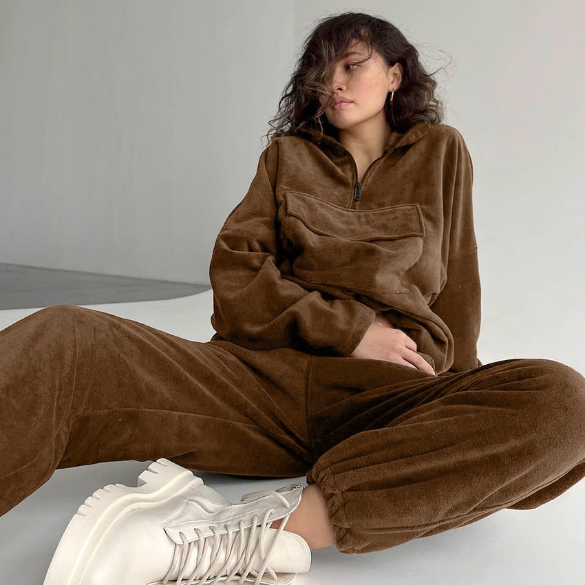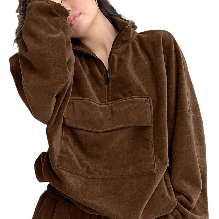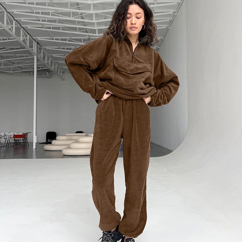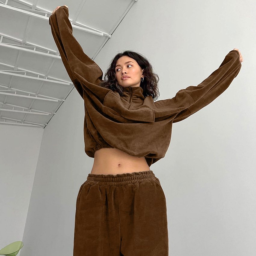Be the first to review “Velvet retro brown short top pencil pants two-piece casual sports suit for women”
